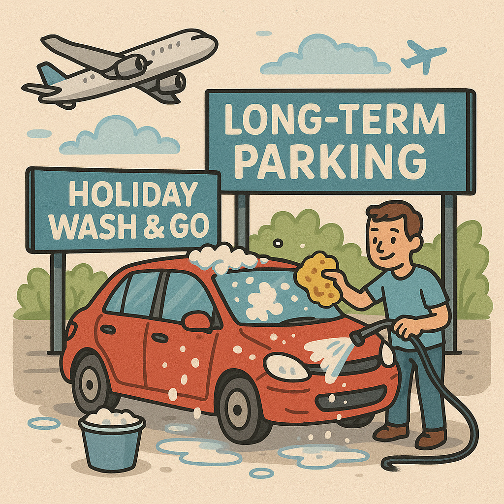 Vi tvättar din bil medan du reser, så att hemresan kan börja bekvämt med en ren bil.